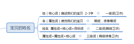 首先,要理解宝贝标题的意义,宝贝的标题是它的一个名字,那么名字分为姓和名,姓代表什么呢,就是核心词,描述你的产品;而名代表属性词,修饰你的产品。而我们的名字就是目标词,由属性词和核心词组成。也就是我们的宝贝标题,30个字需要由核心词和属性词来组成的。